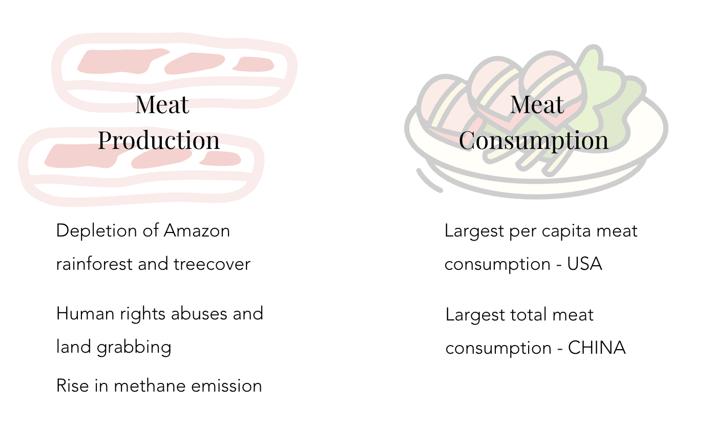 Food systems are important in all societies and are essential for long-term development, but their complexity necessitates a more holistic and integrated approach. The way we shop and eat has a big environmental impact. Hence we performed further research in the Food Industry and discovered three main directions: unsustainable diet (meat intake), food storage and transportation, and food wastage. We chose to study the issue of meat consumption because emissions of livestock industry are huge and awareness about the impact of meat is low.