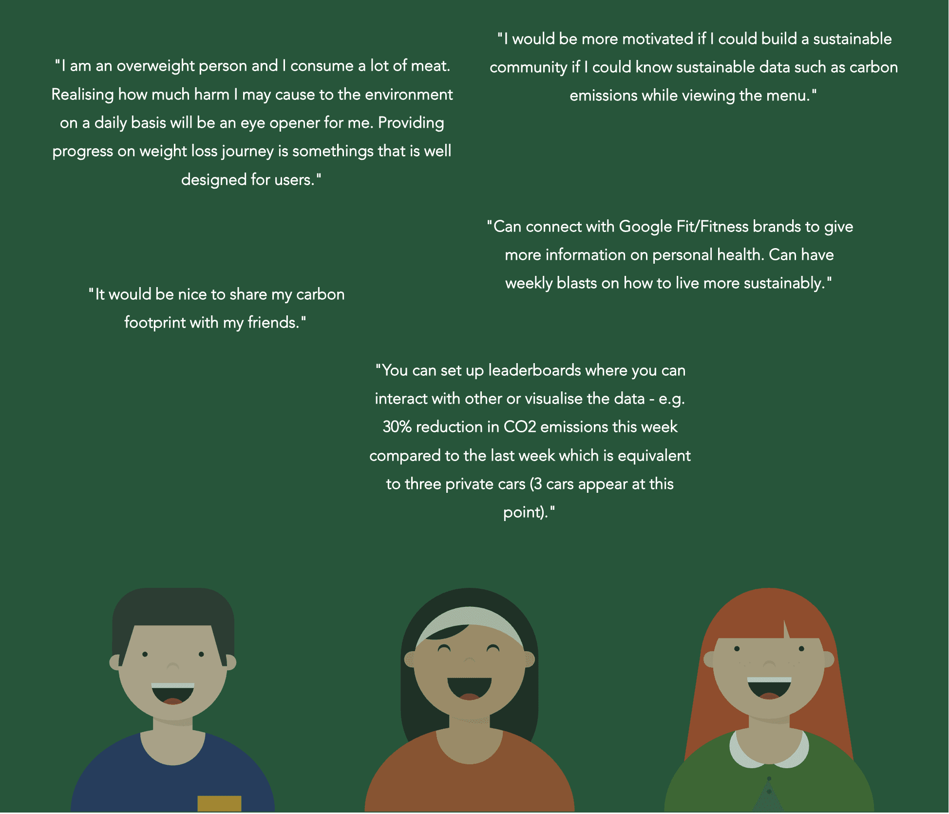 SHIFT is a framework which proposes that when a message or scenario leverages the 5 psychological aspects shown below, consumers are more likely to participate in pro-environmental behaviour. We referred to the SHIFT framework during Ideation to direct us on ways to influence consumer behaviour to reduce meat consumption.