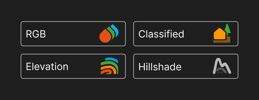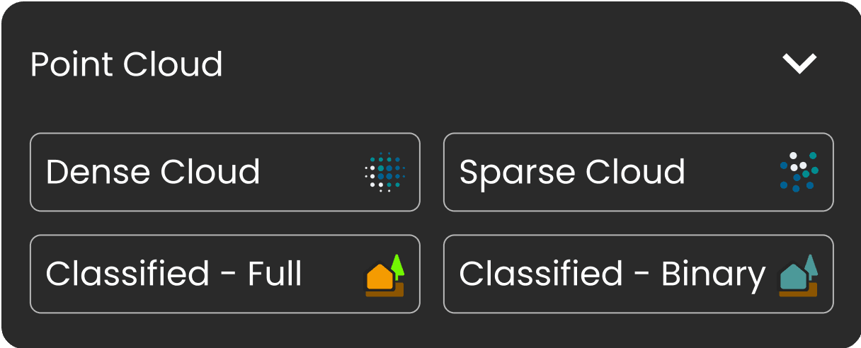 Point Cloud Outputs Menu; Icons and Button Designs for Raster Output Options